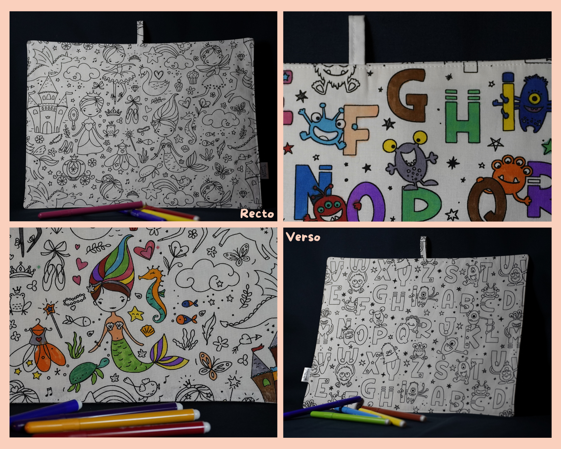 A utiliser exclusivement avec des feutres dits "ultra-lavables" (sauf si l’on souhaite que le coloriage reste !).